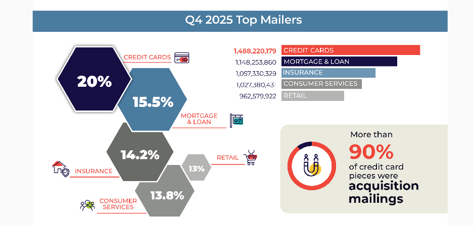 Q4 2025 mail volume indicates mail remains a card acquisition workhorse…with 90% of the 1.5B credit card mail categorized as acquisition mailings. How can FIs stand-out and optimize mail in this highly competitive channel?